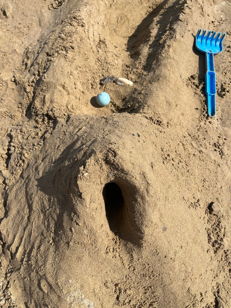 Abbiamo provato comunque a sfruttare al meglio la spiaggia, costruendo una pista delle biglie sulla sabbia.