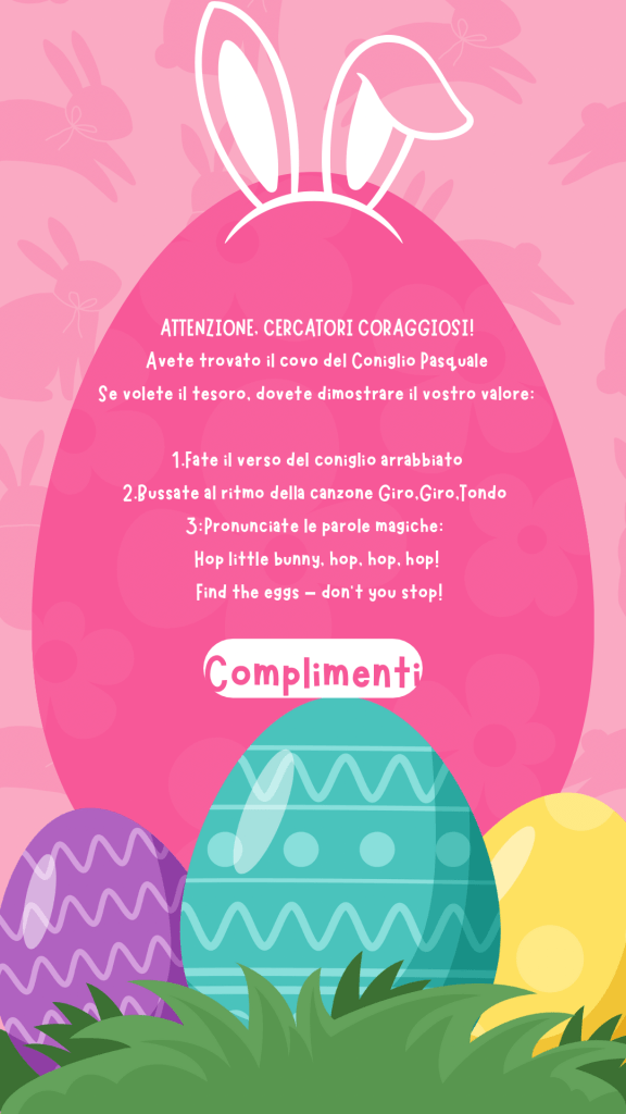 Indizio 2: “Il coniglio pasquale vi ha lasciato un messaggio in codice, traducilo per scoprire la prossima tappa!